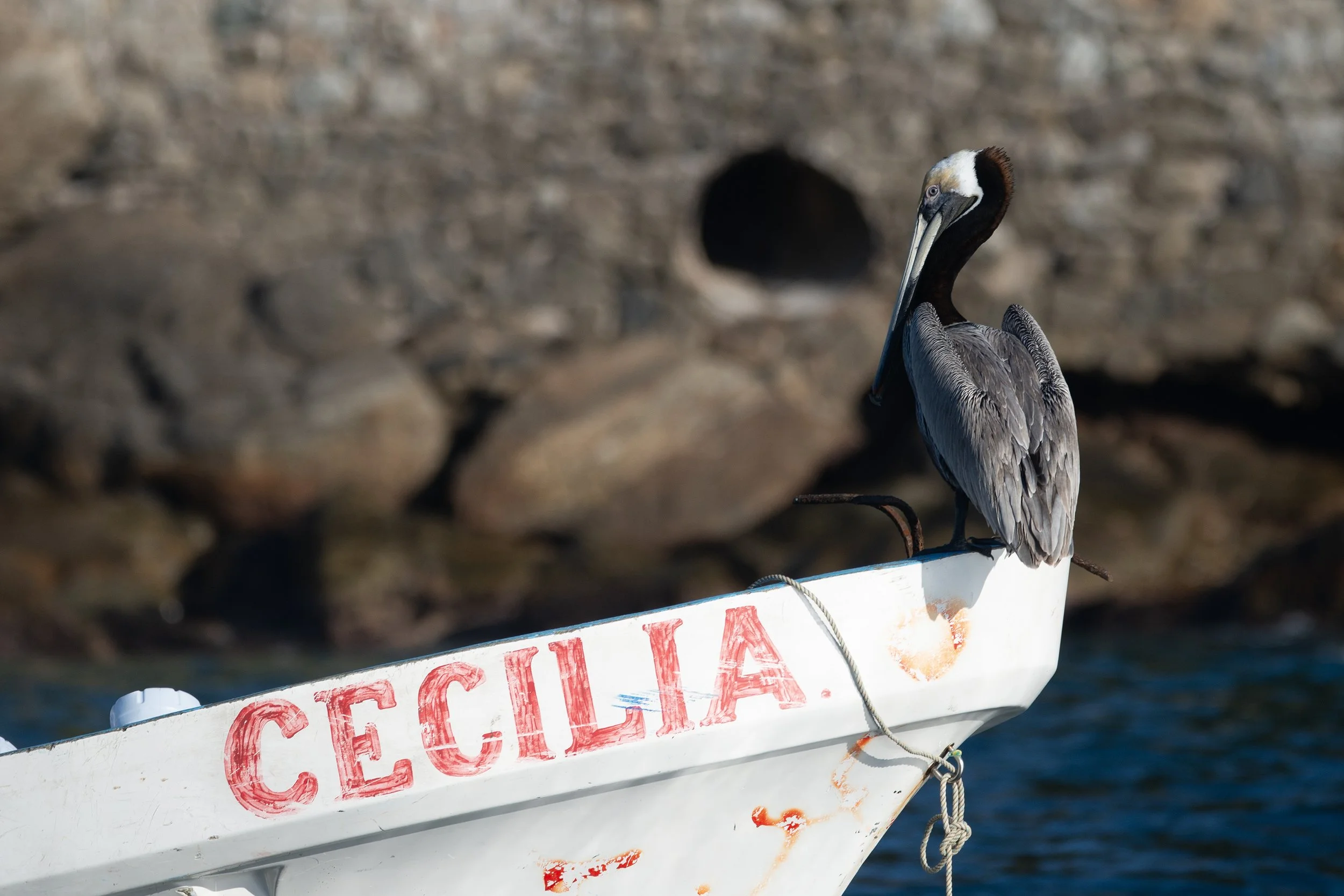 Pelican resting on a boat